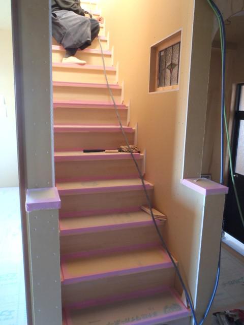 ☆先週の工事☆ 木工事(壁ボード貼り、階段造作、床フローリング貼り、幅木 廻し縁取付、他) 太陽光配線引き込み 外部足場解体 ☆今週の予定工事☆ 木工事(天井パイン材貼り、幅木・廻し縁取付、他) 外部給排水・給湯埋設