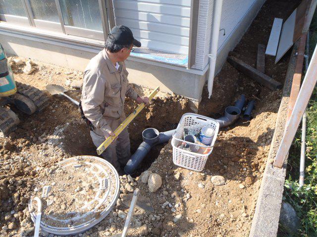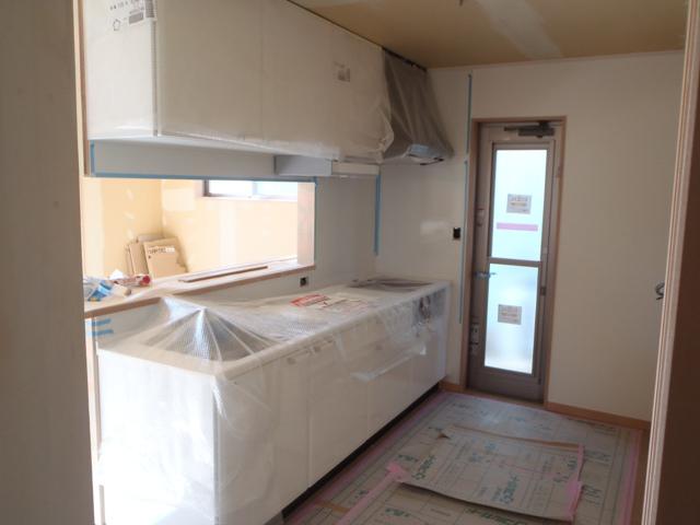 ・内装仕上げクロス工事・床クッションシートが完了し、内部 電気器具、衛生器具付けを進めています。仕上げ工事も残す ところあとわずかとなりました。 ・外部給排水・給湯埋設進め、エコキュートベースコンクリート、本体据付と外部 工事を行っています。