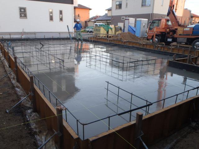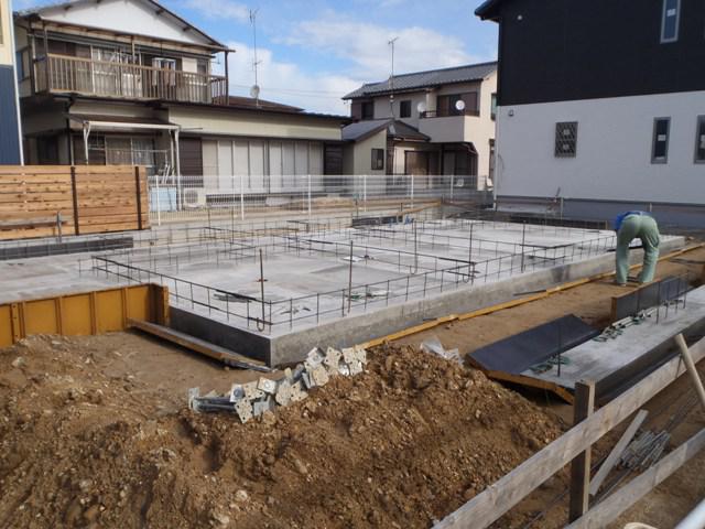 ・立ち上り部型枠組み及びコンクリート打ちを終え来週、型枠解体基礎 周り埋め戻し整地し、基礎工事完了です。 ・上棟準備に入り土台据え、1階下地組みと予定しています。