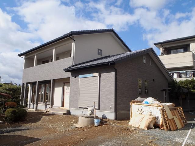 内装木工事が完了しまして、内装クロス工事へと移って行きます。 同時に外部給排水工事、電気・衛生器具取り付けに入って行きます。