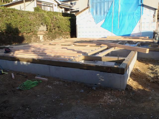 ☆先週の工事☆ 基礎工事(埋め戻し整地、玄関・ポーチタイル下地コンクリート) 構造材搬入、土台据え、床下地組み、上棟準備 先行足場組み ☆今週の予定工事☆ 上棟 木工事(筋カイ・間柱入れ、構造金物取付、他)
