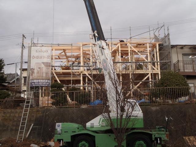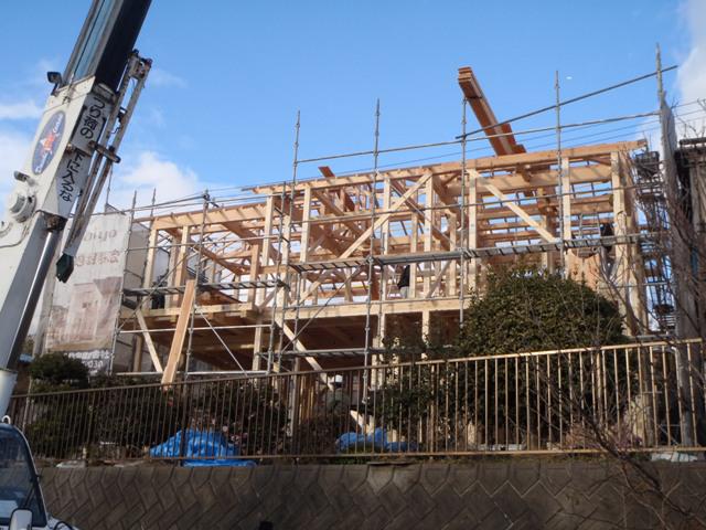 ☆先週の工事☆ 上棟 木工事(筋カイ・間柱入れ、構造金物取付、他) 屋根下地、瓦下地 太陽光パネル設置 ☆今週の予定工事☆ 木工事(2階床下地、ベランダ下地、サッシ開口、他) 屋根工事(荷揚げ、瓦葺き、他)