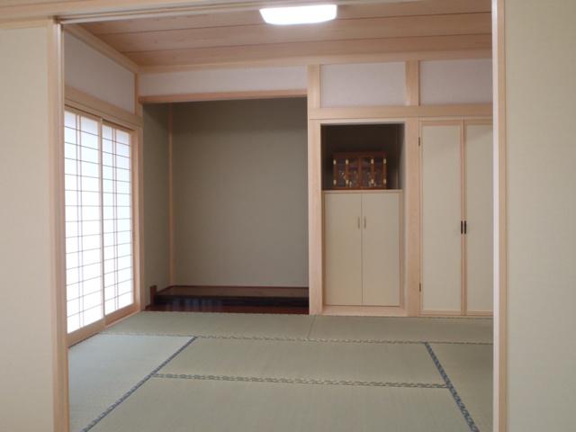 ハウスクリーニング・畳・網戸はめ込み・サッシ調整をして建物完了です!検査機構、完了検査を受けまして検査済証を受けます。 K様の理想の住まいと近づける事がでましたでしょうか?広い広縁と各部屋が広々として収納もたくさんあり、とっても住みやすそうですね!K様おめでとうございます!!