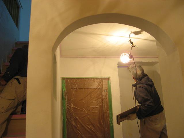 内部左官工事、下地塗りを経て、カルクウォールの上塗りに掛かりました!今週にはタイルが納入されまして、こちらも随時タイル貼りと進めて行きます!