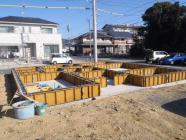 ☆先週の工事☆ 基礎工事(立ち上り生コン打ち、型枠バラシ、片付け、 埋め戻し、他) ☆今週の予定工事☆ 構造材搬入、土台据え、床下地組み、上棟準備 先行足場組み 上棟