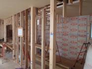 ・木工事、壁断熱材入れ、1階天井下地組み、天井ボード貼り