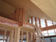 ・木工事、2階天井下地組み、天井ボード貼りを行い、 1階天井下地組み、天井ボード貼りを進めいます。