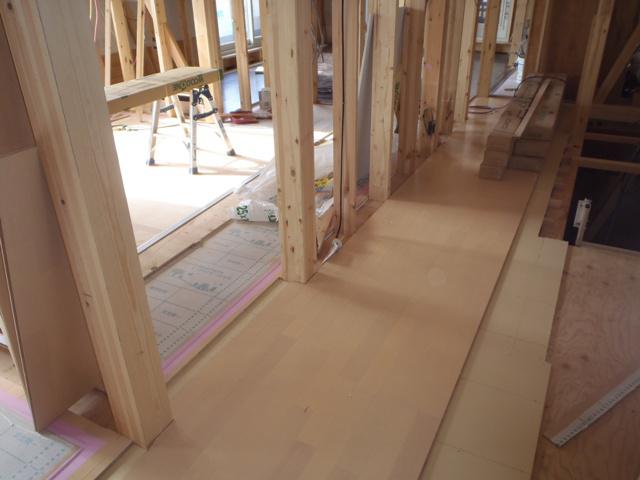 ・木工事・サイディング納期が掛かり、ご迷惑をお掛けして おります、来週より残工事を進めます。 ・木工事・2階床捨て貼りボード・床フローリング貼りを進め 1階床フローリング貼りへと入っていきます。