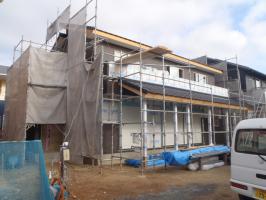 ☆先週の工事☆ 木工事(2階床ボード捨て貼り、フローリング貼り、他) ☆今週の予定工事☆ 木工事(1階フローリング貼り、窓枠取付、他) 外壁工事(サイディング貼り、目地コーキング打ち)