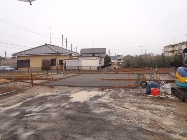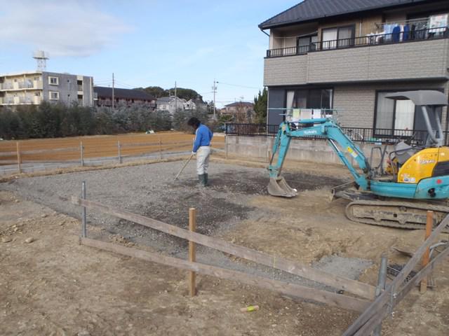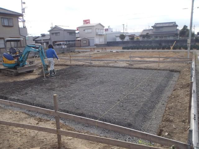 ・基礎工事、掘削をし砕石材にて掘削面の不陸を整え、転圧 しました。 来週、鉄筋組み・ベース型枠組みをし、保証 検査機構JIO 配筋検査(コンクリートの骨組みとなる鉄筋組み 状況、コンクリートと鉄筋との間隔等)検査合格後、ベースコンクリート 打ちと進めていきます。
