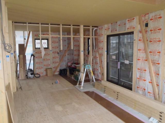 ☆先週の工事☆ 木工事(床ボード捨て貼り、フローリング貼り、他) ☆今週の予定工事☆ 木工事(フローリング貼り、開口枠取付、他) 外壁工事(平部サイディング貼り)