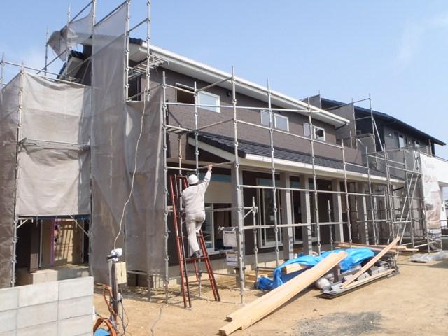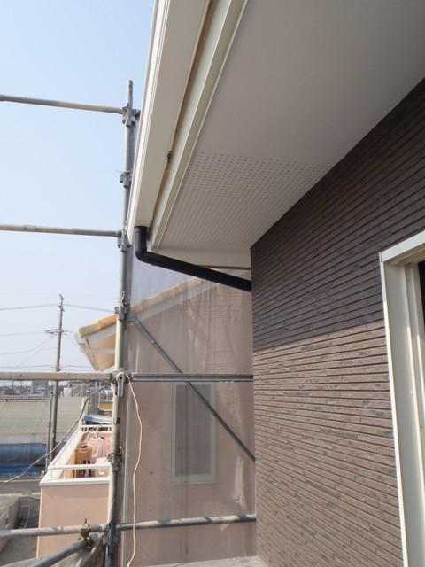・木工事、開口枠取付を行い、順調に内部造作が進んでいます。 ・外部工事、板金・トイ工事、TVアンテナ取付が完了し、 外部足場解体となります。