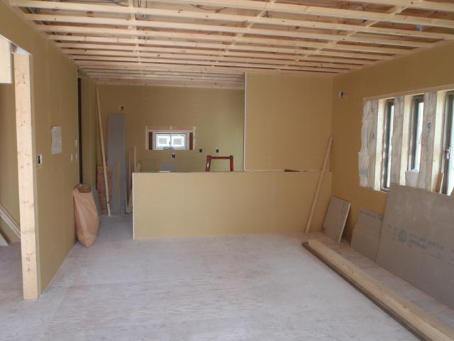 ☆先週の工事☆ 木工事(1階天井下地組み、2階天井壁断熱材入れ・ボード貼り 外壁下地、他) ☆今週の予定工事☆ 木工事(1階天井ボード貼り、外壁下地材、窓枠取付、他)