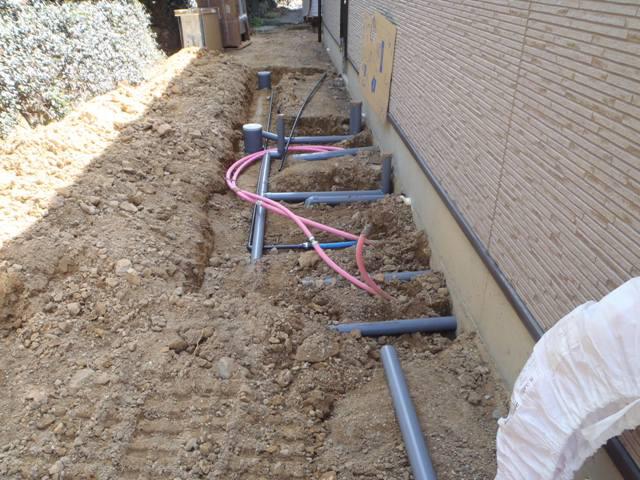 ☆先週の工事☆ 木工事(1階壁ボード貼り、階段造作、幅木・廻子取付、他) 外部給排水・給湯埋設 ☆今週の予定工事☆ 木工事(階段造作、和室造作、幅木・廻子取付、他)