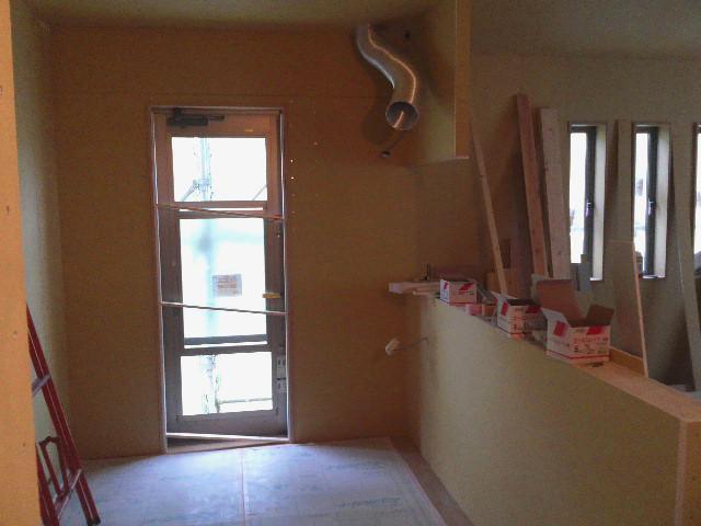 ☆先週の工事☆ 木工事(床フローリング貼り、開口枠取付、壁ボード貼り、他) ☆今週の予定工事☆ 木工事(壁ボード貼り、幅木・廻し子取付、他) キッチン取付