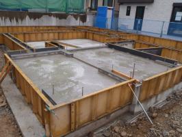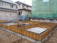 ☆先週の工事☆ 基礎工事(立ち上がり型枠組み及びコンクリート打ち、養生、 型枠解体、埋め戻し整地、他) ☆今週の予定工事☆ 構造材搬入、土台据え、床下地組み、上棟準備 上棟 先行足場組み