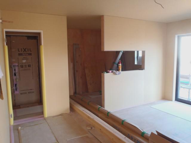 ・木工事・ドア・開口枠を取付ながら、壁ボード・下地合板