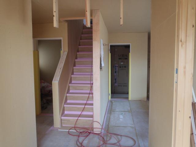 貼りが進み、2階は、幅木・廻縁が取付られていきます。