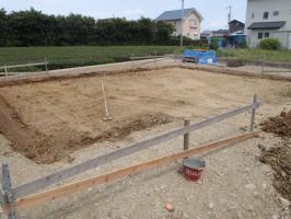 ・地盤調査の結果報告書より、しっかりと地盤強度が確認 出来ました。 ・19日より基礎工事に着手し、丁張(基礎の基準となる位置、 高さ出し)を行い、掘削砕石地業と工事を進めています。 毎週このニュースレターを発行しお届けします。