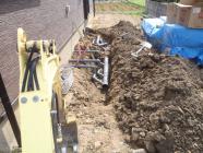 ました、外部給排水管 埋設、玄関・ポーチタイル工事と外部