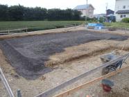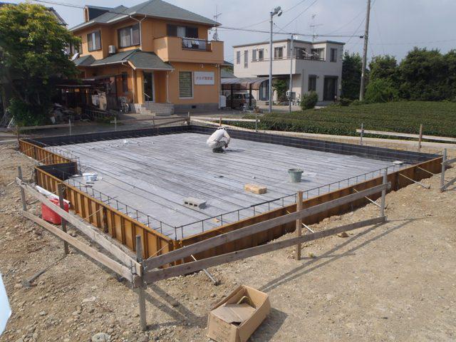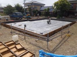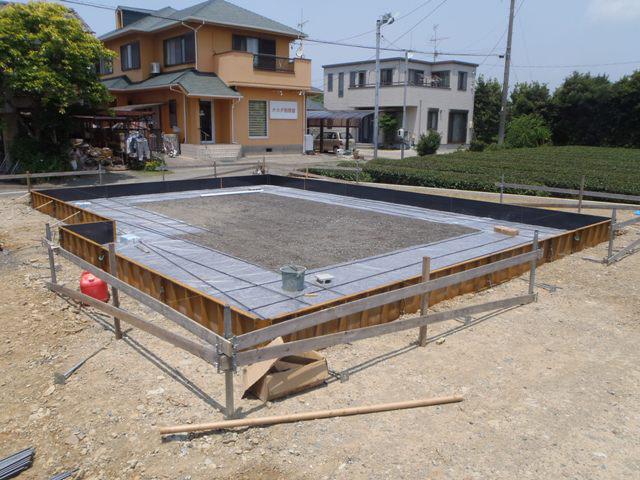 ・基礎工事、砕石地業、土間シート敷き、ベース型枠組み、鉄筋 組みと進めています。 ・3日保証機構JIO 配筋検査(基礎コンクリートの骨組みとなる、 鉄筋組み状況、コンクリートと鉄筋との間隔等)を予定しています。 合格後、ベースコンクリート打ちを行います。