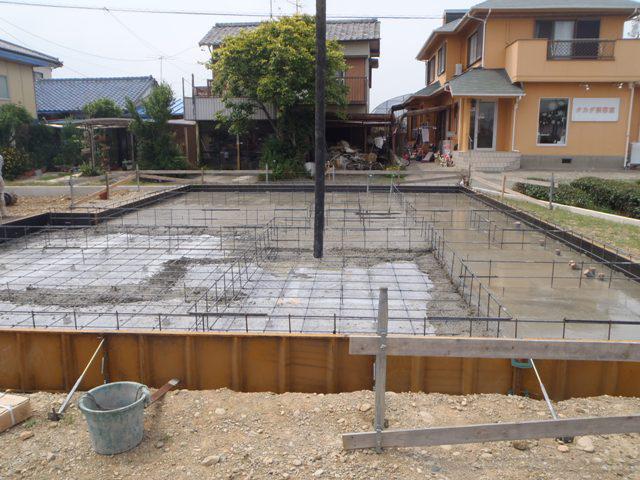 タイル下地コンクリートを打ちを行えば、基礎工事完了となります。