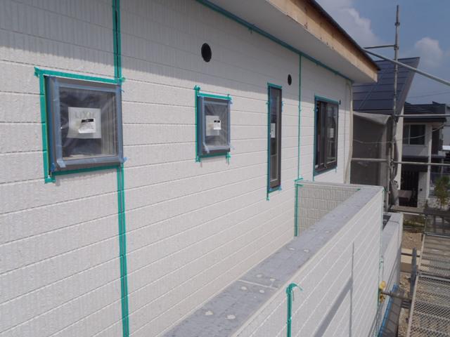 ☆先週の工事☆ 木工事(窓枠取付、床フローリング貼り、壁プラスターボード貼り、他) 外壁工事(目地・サッシ周りコーキング打ち、他) ☆今週の予定工事☆ 木工事(床フローリング貼り、ドア枠・開口枠取付、壁プラスターボード 貼り、他) 軒天塗装
