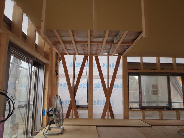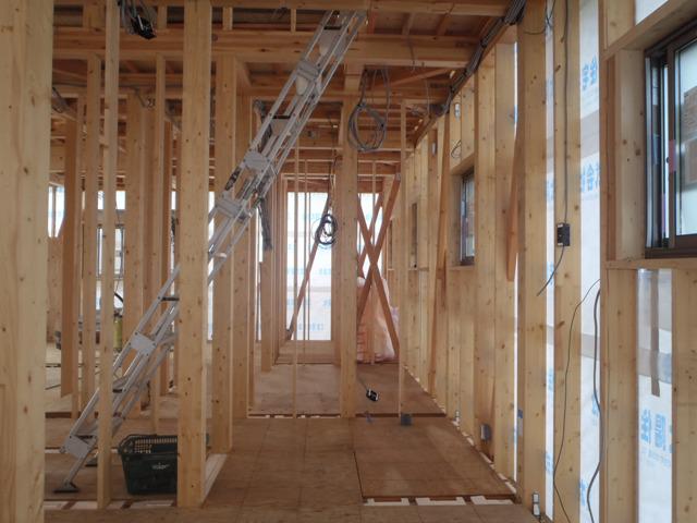 ☆先週の工事☆ 木工事(1階床断熱材入れ、下地合板締め、天井下地組み 及びボード貼り、他) 内部電気・給排水 保証検査機構JIO 外装下地検査 ☆今週の予定工事☆ 木工事(外壁下地打ち、軒天下地組み、ケイカル板貼り、1階天井 下地、壁断熱材入れ、他)