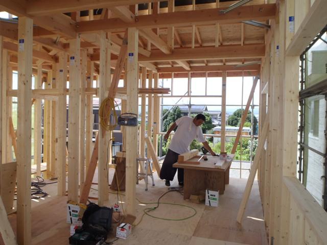 ☆先週の工事☆ 木工事(筋カイ、間柱入れ、構造金物取付、ベランダ下地、サッシ 開口造作、他) 屋根工事(下地材葺き・カラーベスト葺き) ベランダFRP防水 ☆今週の予定工事☆ 木工事(サッシ開口造作、サッシ取付、他) 夏期休暇