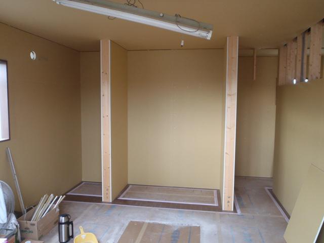 ☆先週の工事☆ 木工事(ドア開口枠取付け、壁下地合板、プラスターボード貼り、 他) 板金・トイ掛け TVアンテナ・換気扇フード類取付 ☆今週の予定工事☆ 木工事(壁下地合板、プラスターボード貼り、棚類取付、 和室造作、他)