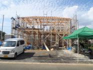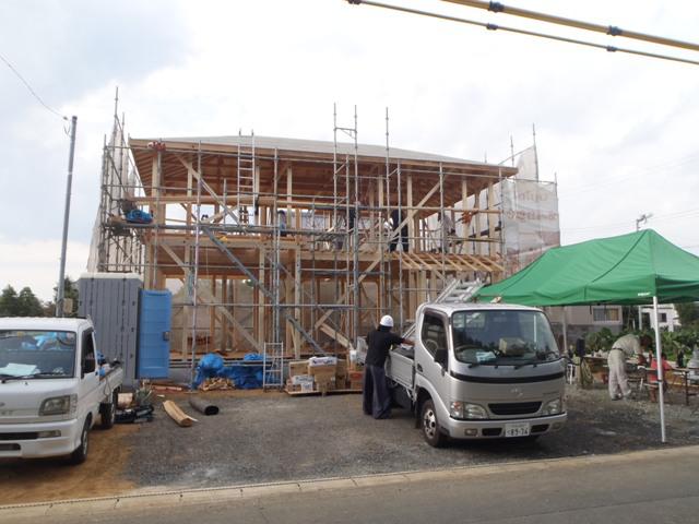 ・上棟おめでとうございます。天候に恵まれ屋根下地まで進める ことが出来、上棟式餅投げには、多くの方に集まって頂きまし た。 ・木工事完了まで、棟梁・野末さんに腕を揮って頂き、 工事を進めさせていただきます。