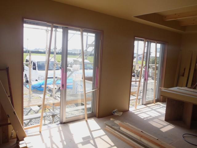 進めながら、窓枠材建具枠取付を進めています。