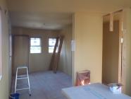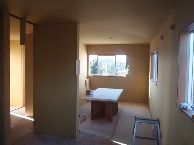 ・内部木工事、先週に引き続き壁下地合板・プラスターボード貼りを