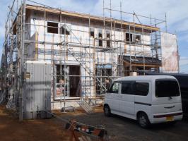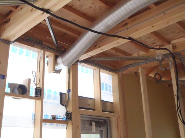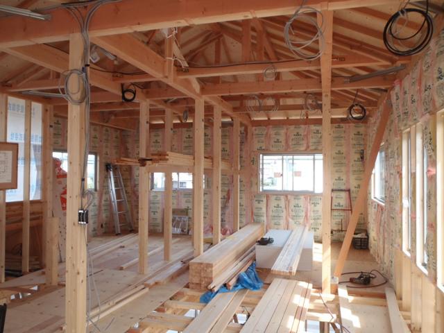 ・先週の18号は建物に影響はなく一安心した所でしたが、19号 接近予報が出て毎日台風の動きを心配しています。 ・工場状況、内部電気配線・換気扇類、ダクトスリープ取付 給排水、給湯管設置し、1階床断熱材入れ、下地合板本締め、 2階壁断熱材入れを進めています。