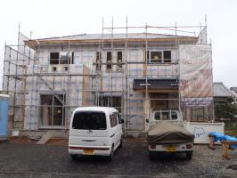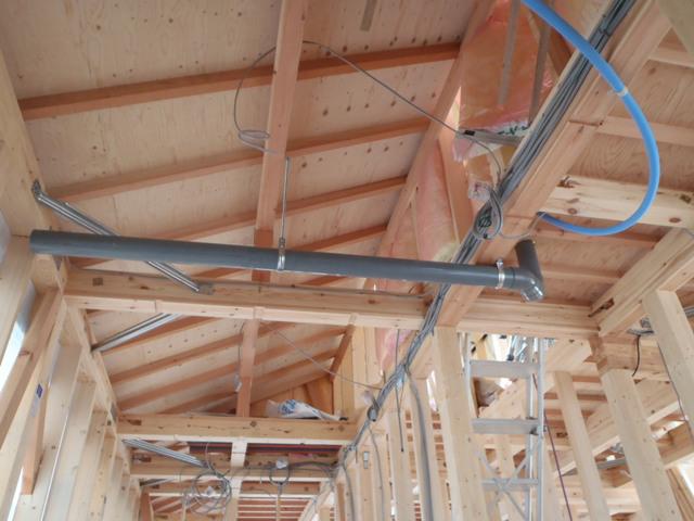 ☆先週の工事☆ 木工事(天井下地組み、壁断熱材入れ、他) 太陽光パネル設置 ☆今週の予定工事☆ 木工事(2階床フローリング貼り及び壁ボード貼り、天井下地組み、 他) 外壁工事(外壁下地、サイディング貼り、他) ユニットバス据付け