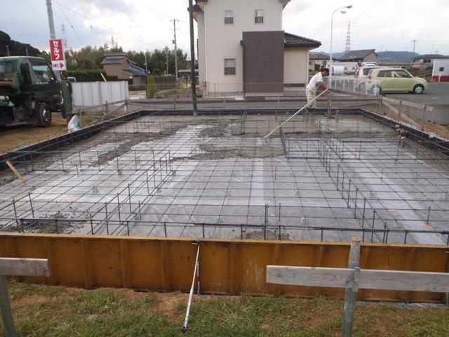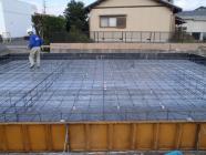 ・基礎工事、ベース型枠組み、鉄筋組みを行い、保証検査機構 JIO・配筋検査を受けベースコンクリート打ちを行いました。 ・来週、立ち上り部型枠組み、アンカーボルト類設置しコンクリート打ちを 予定しています。