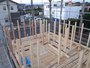 上棟準備(構造材・下地木材搬入、土台据え、床下地組み、他)