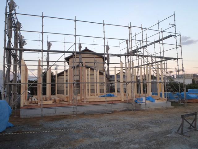 進め、外部足場組みし、いよいよ上棟を迎えます。