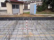基礎工事(ベース型枠組み、鉄筋組み、ベースコンクリート打ち、