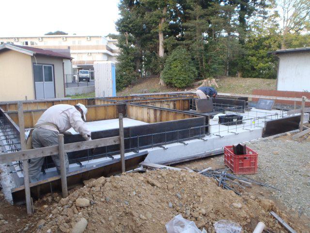 ・基礎工事、ベース型枠組み、鉄筋組みを終え12日保証機構、