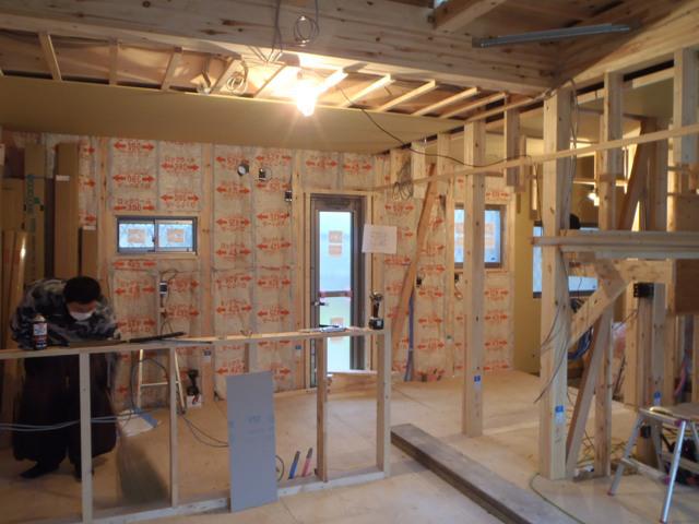 ・内部木工事、2階床下地ボード貼りを行い、フローリング貼りに入ります。