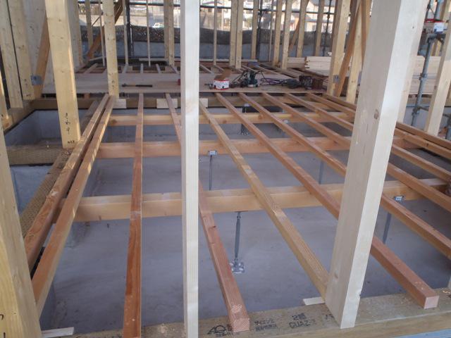 ・新年明けましておめでとうございます。冬季休暇を頂き有難う ございました。 ・木工事、構造金物取付、床下地材(根太・大引き)本締め、下屋 根下地造作、サッシ開口と進めています。 ・14日保証機構JIO・検査機構、中間検査を受けます。