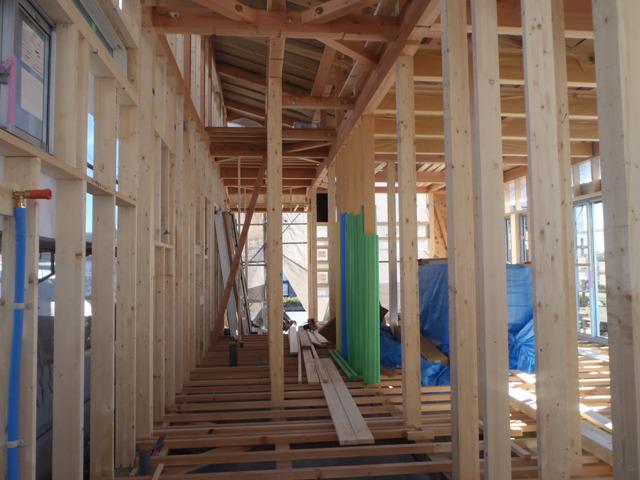 ☆先週の工事☆ 木工事(サッシ取付、外壁下地、床断熱材入れ、下地合板 本締め、他) ☆今週の予定工事☆ 木工事(外壁下地、床断熱材入れ、下地合板本締め、UB下地 他) 吹き抜け断熱工事 内部配管 外壁下地シート貼り 保証機構、外装下地検査