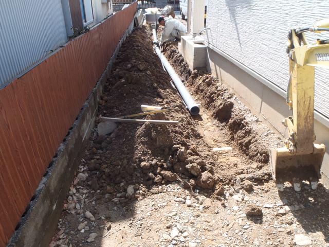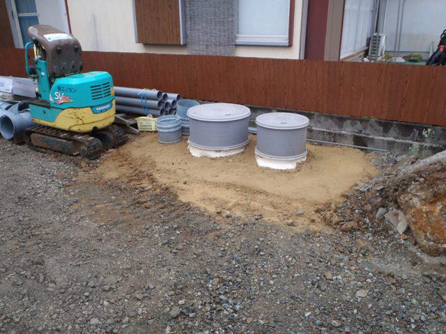 ・外部工事、浄化槽設置し、給排水埋設、進めています。 ・18日キッチン据付完了し、幅木・廻し縁取付、建具吊り込み と木工事も残す所わずかとなりました。