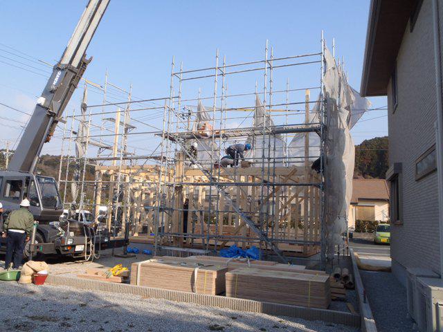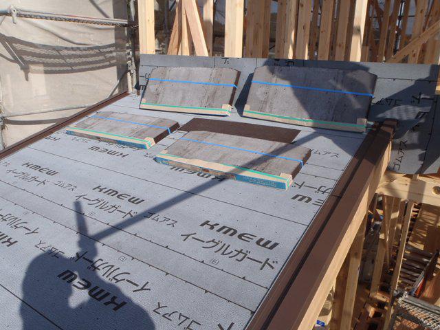 ・上棟おめでとうございます、屋根下地、筋交い・間柱入れと 工事を進められ、上棟式を行えることが出来ました。 18日、屋根業者にて下地板金、カラーベスト葺きが完了しました。 ・棟梁、来週半ばより、木工事に取り掛かります。