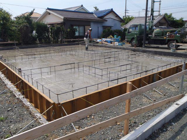 コンクリートを打ちを行い、基礎工事完了となります。 上棟に向け