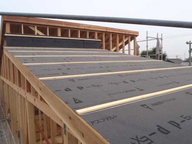 ☆先週の工事☆ 木工事(筋カイ・間柱入れ、構造金物取付、床下地、他) 屋根工事 ☆今週の予定工事☆ 木工事(構造金物取付、床下地、ベランダ下地、サッシ開口 サッシ取付、他)