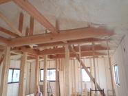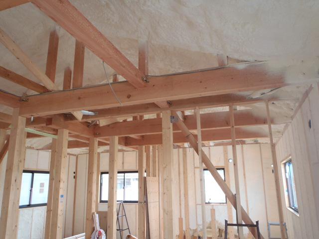軒天下地及びボード貼りを終え、2階天井下地組み、天井