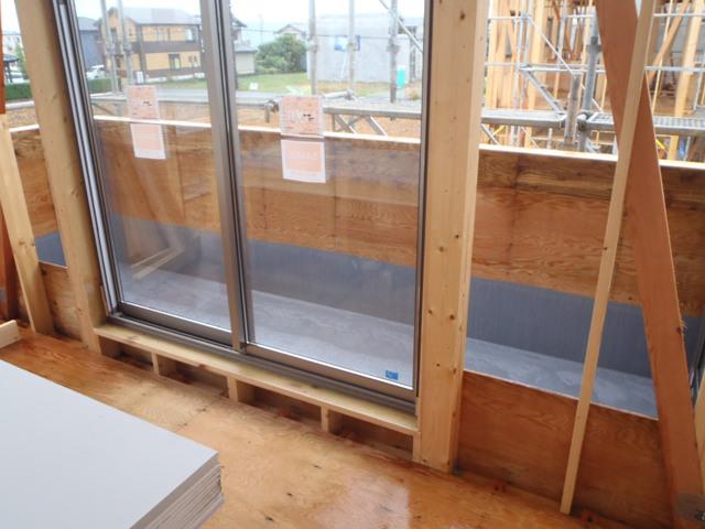 外壁下地シート貼り 内部電気配線・給排水配管