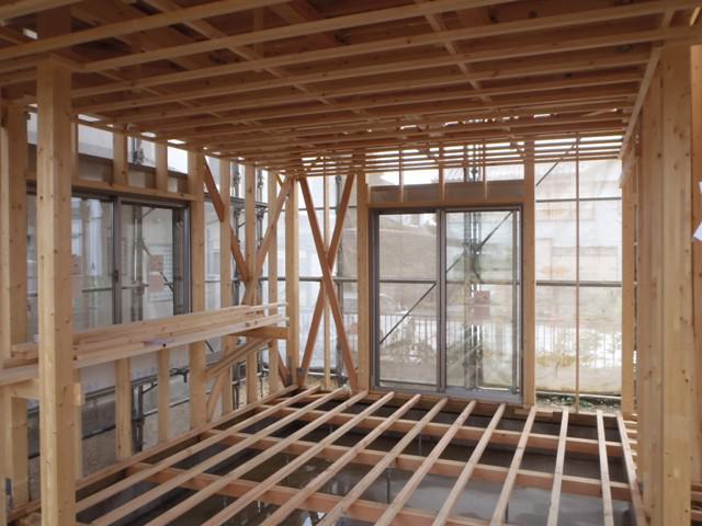 ☆先週の工事☆ 木工事(天井下地組み、軒天下地組み、軒天ボード貼り、他) ベランダFRP防水 防腐防蟻処理 保証機構・構造検査 ☆今週の予定工事☆ 木工事(天井下地組み、軒天下地組み、軒天ボード貼り、他) 外壁下地シート貼り 内部電気配線・給排水配管